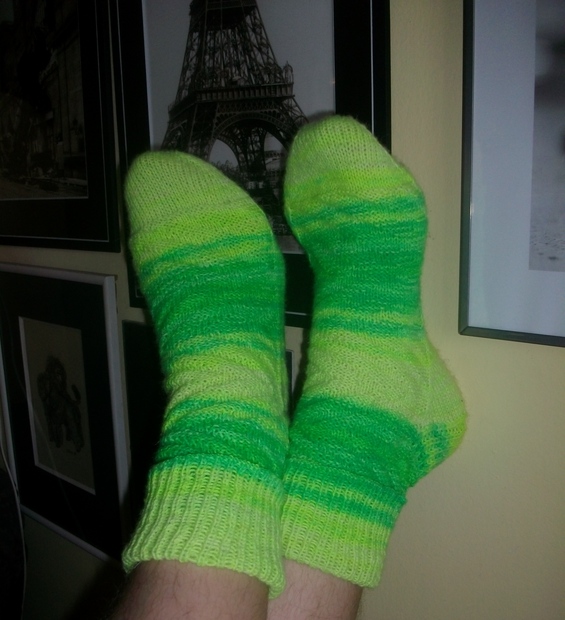 Neonové citronovo-limetkové ponožky pro syna, vel. 45, spotřeba 100g klubko ponožkové příze 420mú100g, složení 75% vlna, 20% nylon, ještě kousek zbylo na případné opravy.