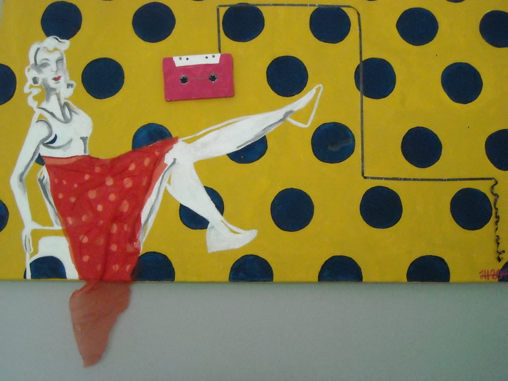 plátno, malba + koláž