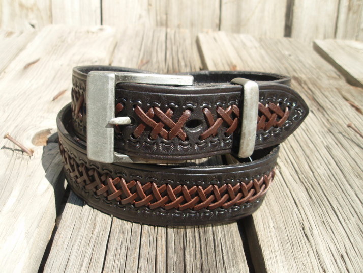 Opasek černý hnědě vyplétaný