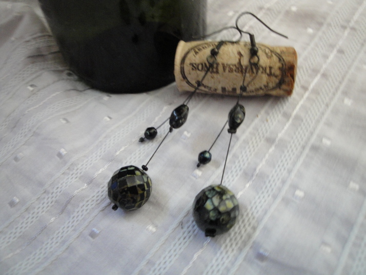 dvojitě visící náušnice s výrazným korálkem s hadím efektem