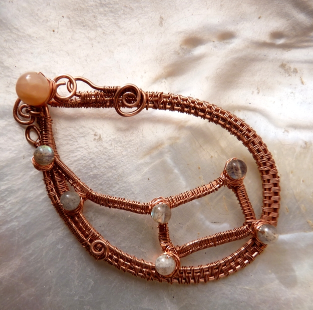 tarotová karta ve stavu zrodu. Polárka Malého vozu, který podle mne je právě tím vozem, který v sobě ukrývá tajemství správného směru, měla být totiž z úplně jiného korálku. Proto zatím Vůz nechávám nedokončený, bez patiny a bez závěsu. Chybí o koně...