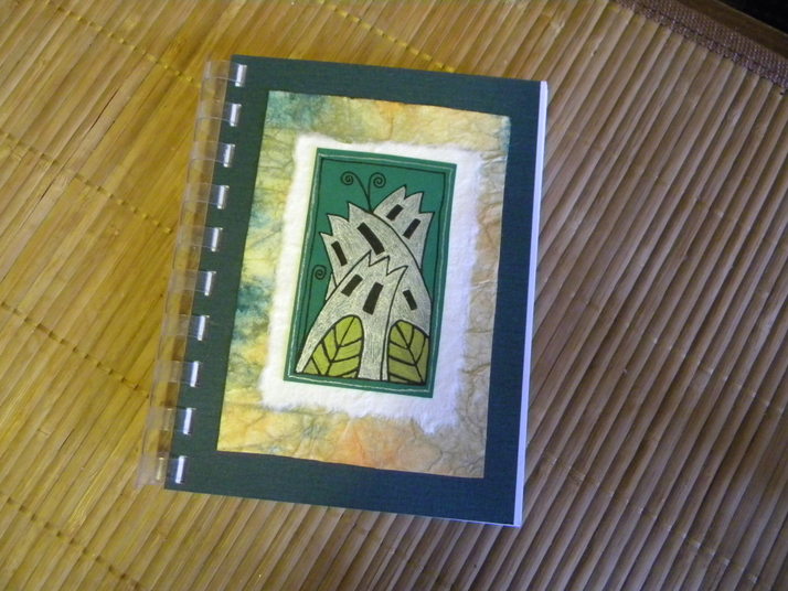 Blok s plastovou kroužkovou vazbou.Přední i zadní strana z tvrdého kartonu.