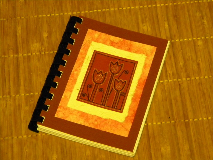 Blok s plastovou kroužkovou vazbou.Přední i zadní strana z tvrdého kartonu.