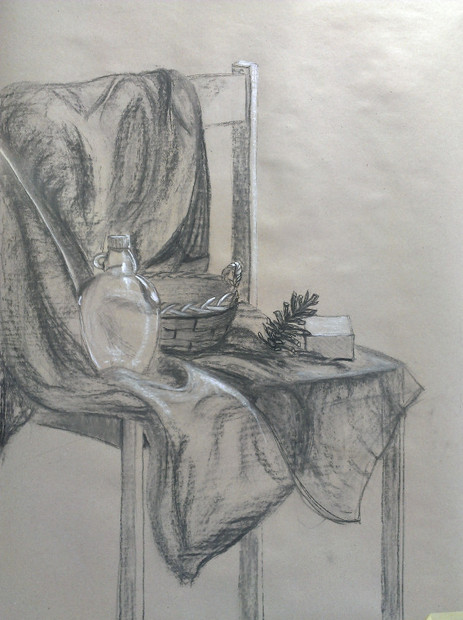 ... kurz základů kresby - den druhý, druhá kresba uhlem + bílým pastelem na papír