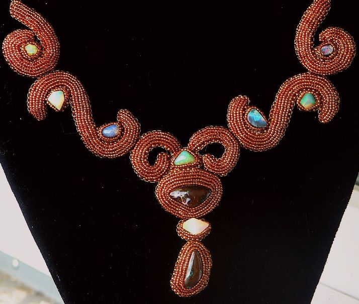 Medově zlatý rokajl,drahý opál,Boulder opál