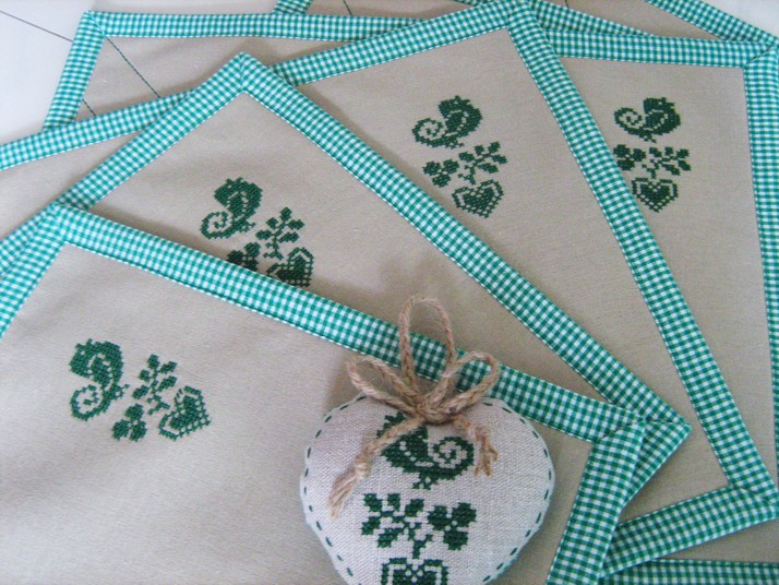Prostírání s křížkovou výšivkou lemované kanafasem