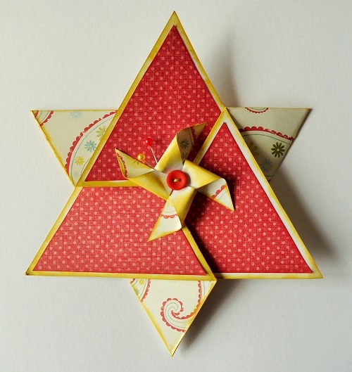 3D blahopřání ve tvaru skládané hvězdy vzniklé pro výzvu v klubu Cardmaking.