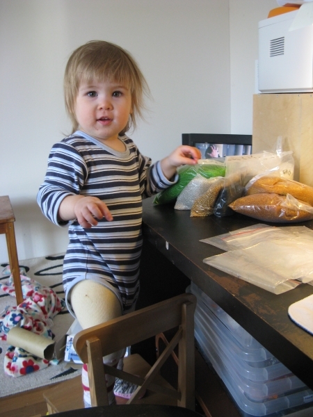 Zjistila, že když si ke stolu přisune svoji židličku, může mi pomáhat. V tu chvíli mi narostla další ruka abych hlídala co dělá na stole a aby nespadla.