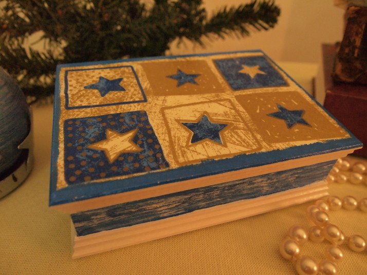 šperkovnice - modré a zlaté hvězdy