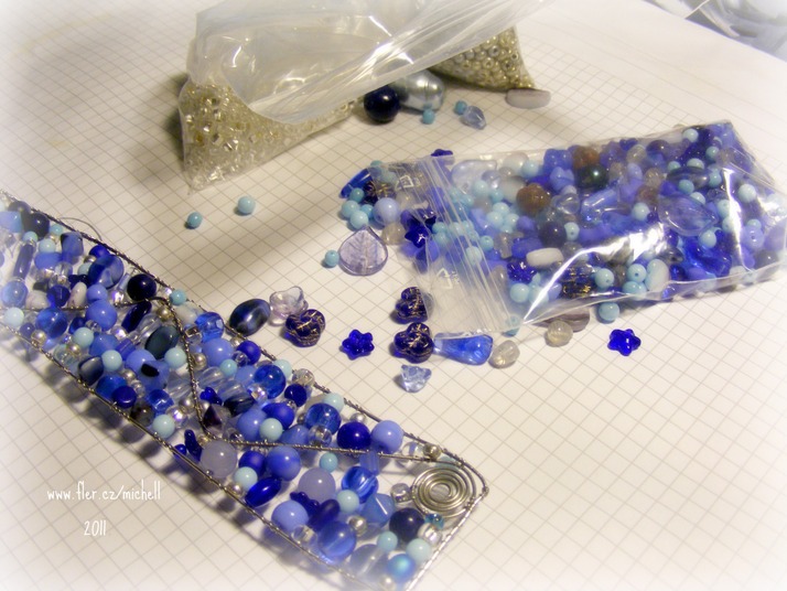 Výroba náramku na modní přehlídku - příprava a konečný produkt - modrý náramek.