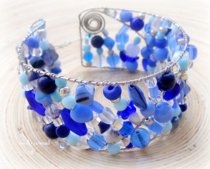Výroba náramku na modní přehlídku - konečný výrobek, modrý náramek.