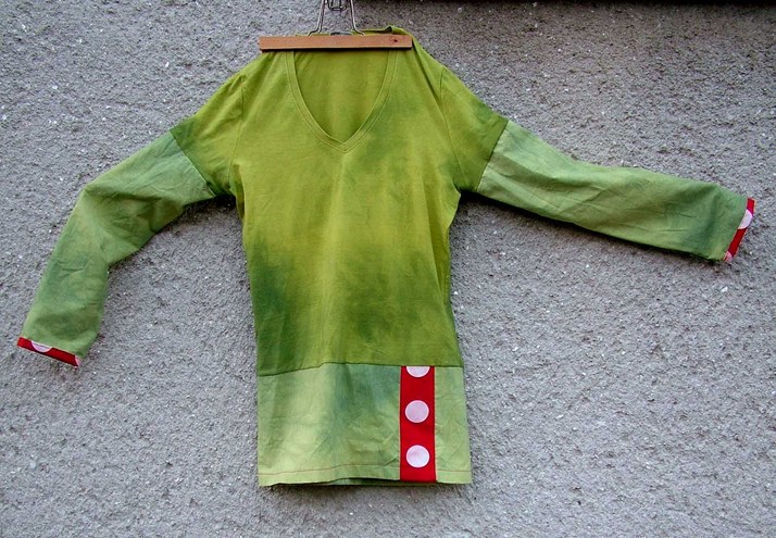 Třičko a staré prostěradlo jsem nabarvila a doplnila puntíkatou látkou z Ikea.