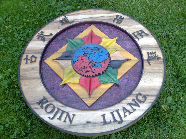 průměr 60cm, z ořechové spárovky, barvený aquarelem