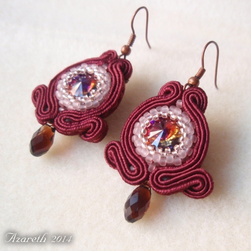 Náušničky s nádhernými Swarovski rivolkami a kapičkami doplněné vínovými sutaškami.