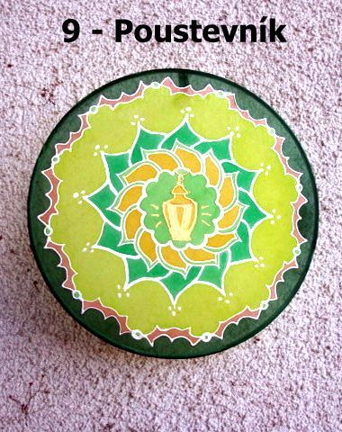 mandalka: odstíny zelené, tmavě žlutá a hnědá