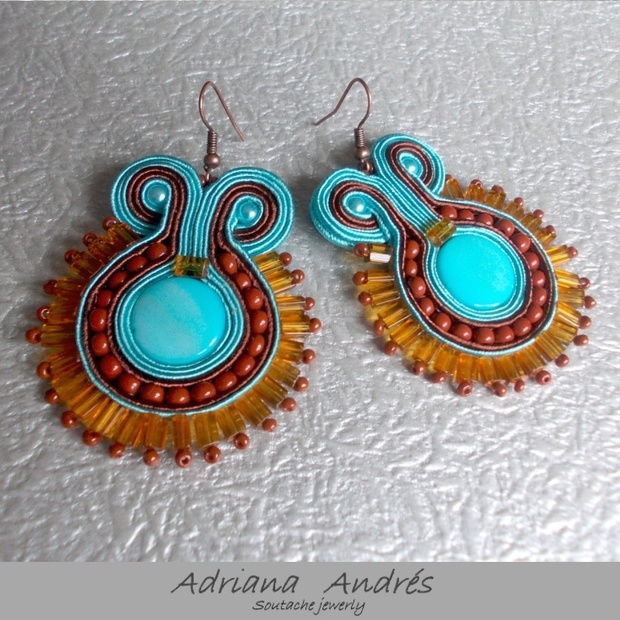 sutaškové naušnice v hnědo-tyrkysových odstínech