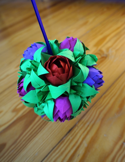 Taková speciální kusudama...lilie jako zeleň, listy ve spojení s květy lotosů (vynechala jsem jejich listy). Je opravdu krásná a udělala radost :)