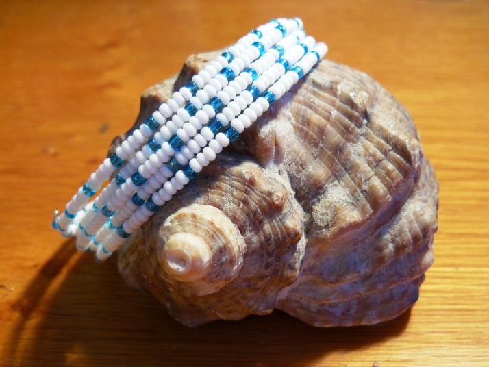 Použity byly rokajlové korálky bílé barvy a čirý modrý rokajl.
