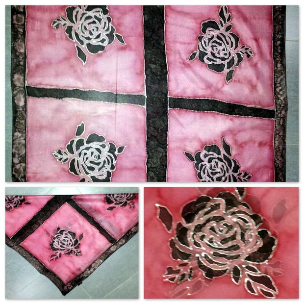 Elegantně tajemný hedvábný šátek s motivem růže...