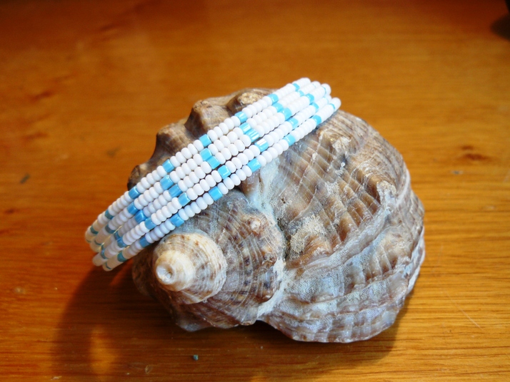 Použity byly rokajlové korálky čistě bílé barvy a modré barvy.