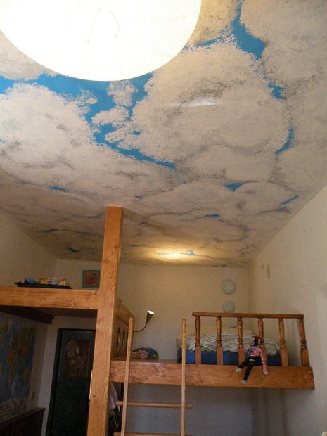 Malba v dětském pokoji,kde je patro ve stylu lodě.