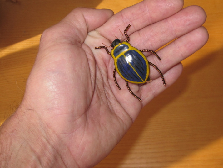 Vyrobeno jako dárek pro řemeslníka zabývajícího se rozvody vody a odpady. Vzorem byl potápník, tento je ale jinak barevný a větší (žumponor proto, protože šťastný majitel entomologické kazety dělá i ty odpady...)