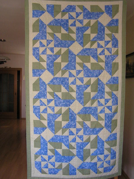 Synův přehoz na postel, moje v pořadí druhé větší dílo, pak už jsem to nepočítala.