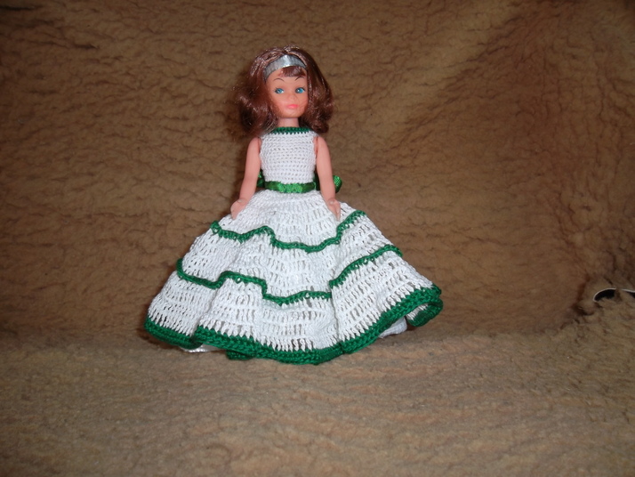 20cm vysoká,ručně háškované šaty se spodničkou.