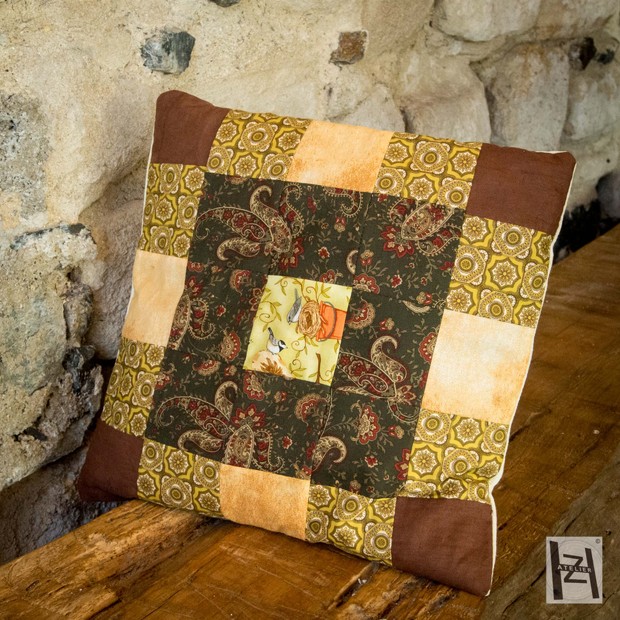 Polštář z bavlněných látek, ve středu s motivem ptáčků