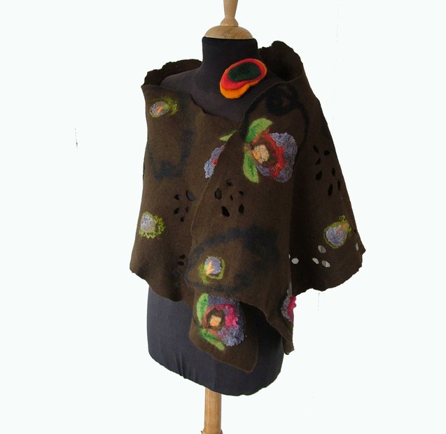 Plstěný pléd a brož pro moji kamarádku Ivu.