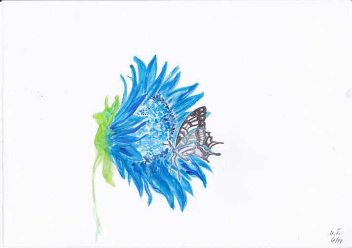 Motýl z 4/14-akvarelová tužka překreslen akvarelovými barvami.