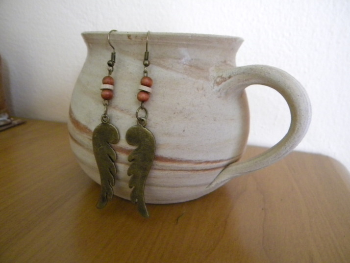 Náušnice o délce 6,5 cm s dřevěnými korálky a plast.zarážkami.