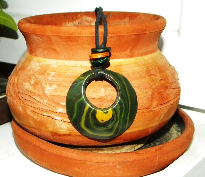 Přívěsek o průměru 4 cm je vyroben z Fima,lakován.