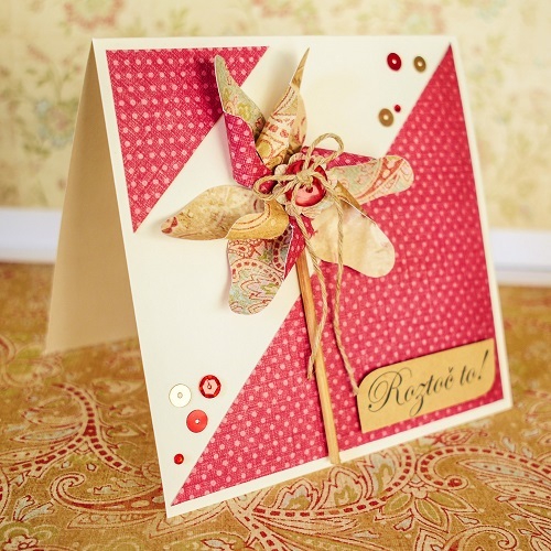 Roztoč to s větrníčkovým přáním laděným do tlumených červeno-okrovo-béžových tónech. Vytvořené pro přehlídku 3D přání s větrníčkovou aplikací