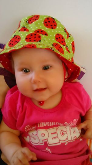 klobouček s tkaničkami od nás a vysmátá beruška