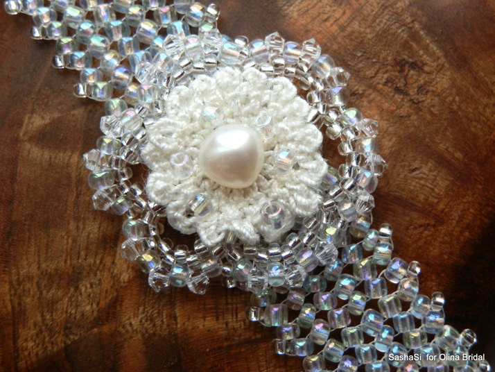 Svadobný náramok s hackovanou kvetinkou