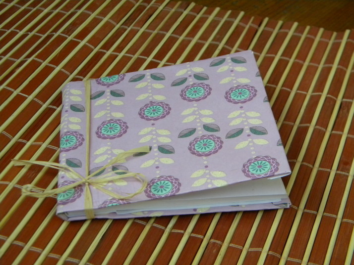 Ručně vyrobený bloček z tvrdé čtvrtky a tvrdšího dekoračního papíru.