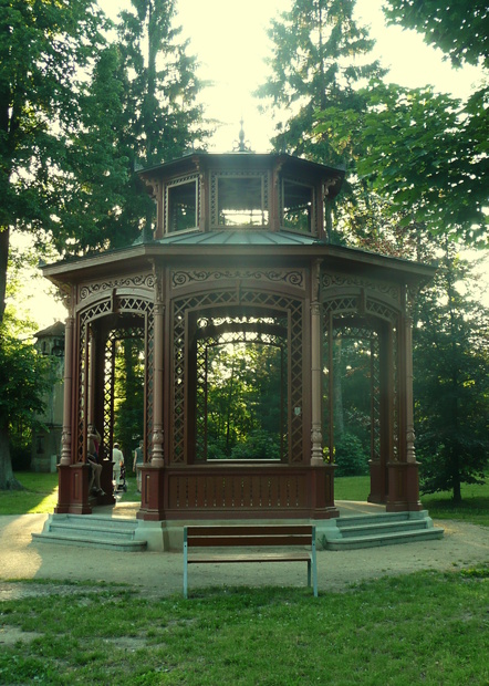vyfotím altánek s klonícím se sluncem v pozadí...