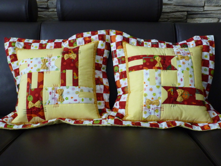 3motýlci jsou ušité zvlášt a našité ručně, látka je stejná jako proužek mezi kočkama a lemem