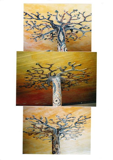 Zkrášlení betonového sloupu.Také jsem dělala kompletní designe kavárny od stolů po strop.