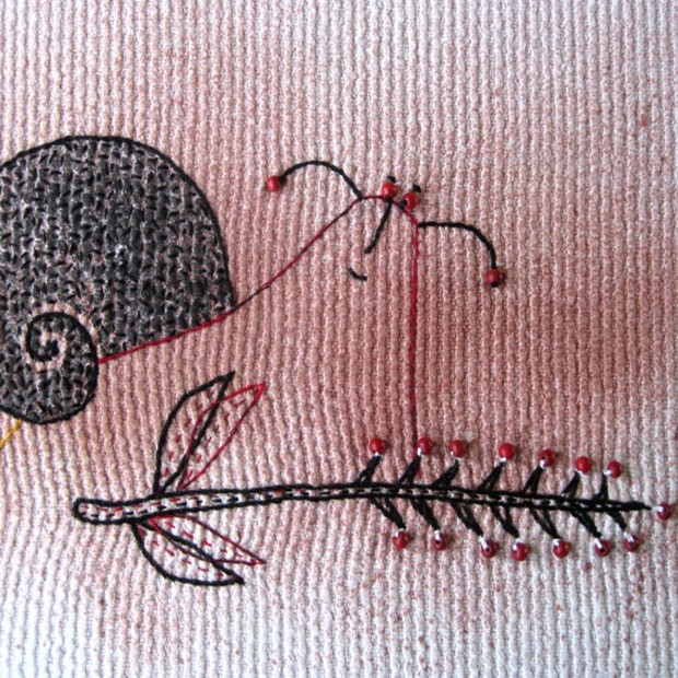Výšivka na ručně tkané bavlněné textilii ... bude kabelka ;o)