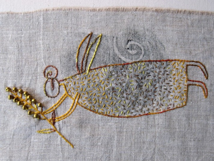 Výšivka na lněném plátně ... už je z ní kabelenka, která odlétla do Oxfordu ... :o)