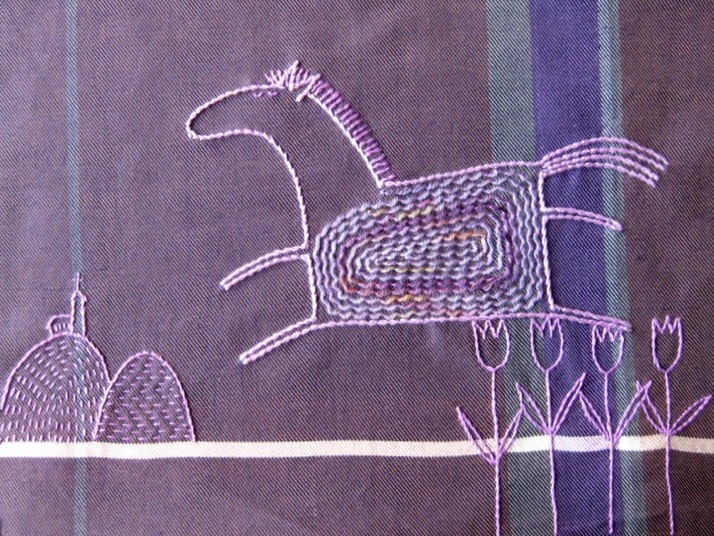 Výšivka na bavlněném kepru bavlnkami DMC ...