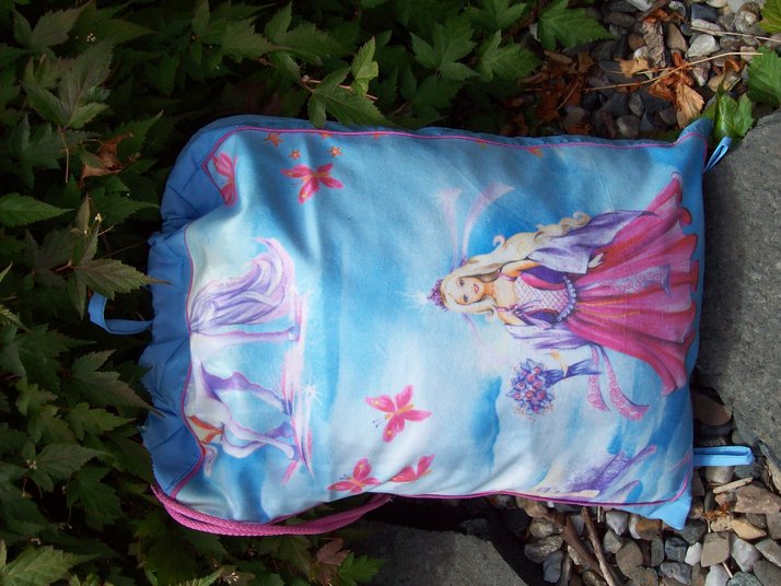 dole má dvě poutka, nahoře jedno, kyž se poutky protáhne provázek, je z pytle batůžek