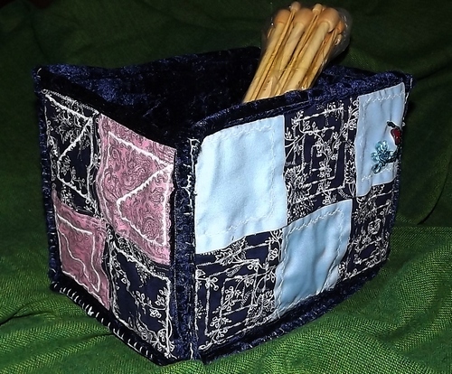Košík praktická pomůcka pro všechny tvořilky.Vyroben z bavlny,veluru.Zdoben perličkami, výšivky.