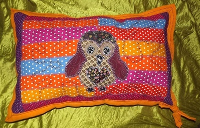 POlštář šitý Crazy stylem s aplikací Sovy