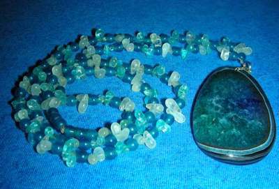Náhrdelník vyroben z achátu, apatiti,aquamarínu