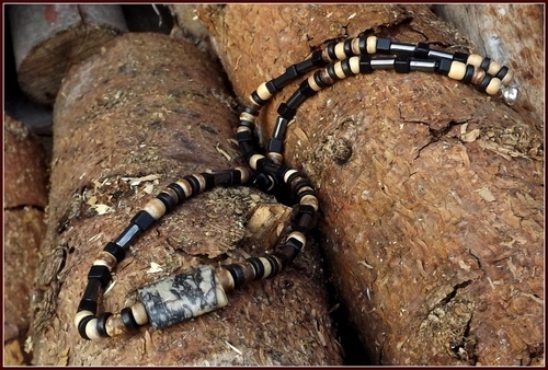 Vyroben s kokosových korálků, tyrkysu black a Jasper Picaso kamene