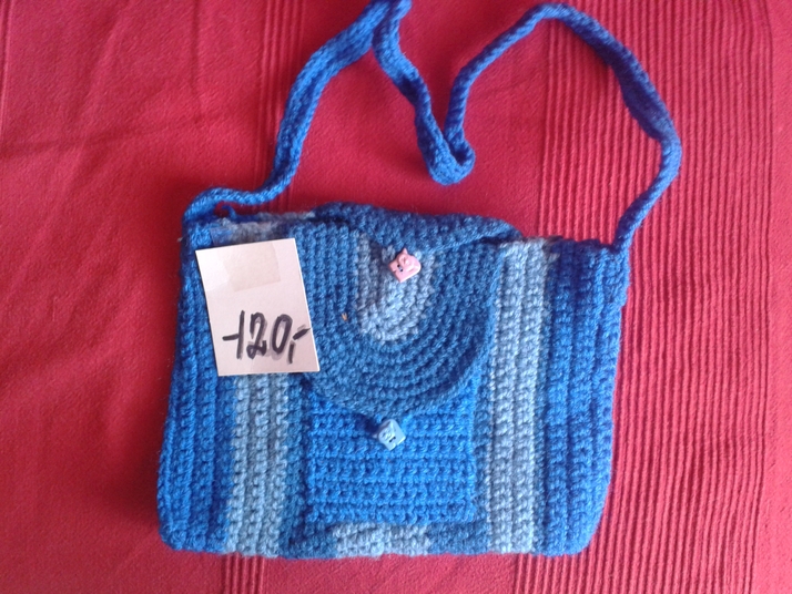 modrá háčkovaná dětská taška