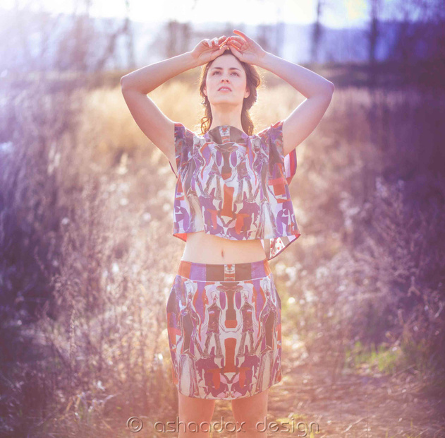 sukně a top z hedvábného saténu s autorským potiskem ashaadox design